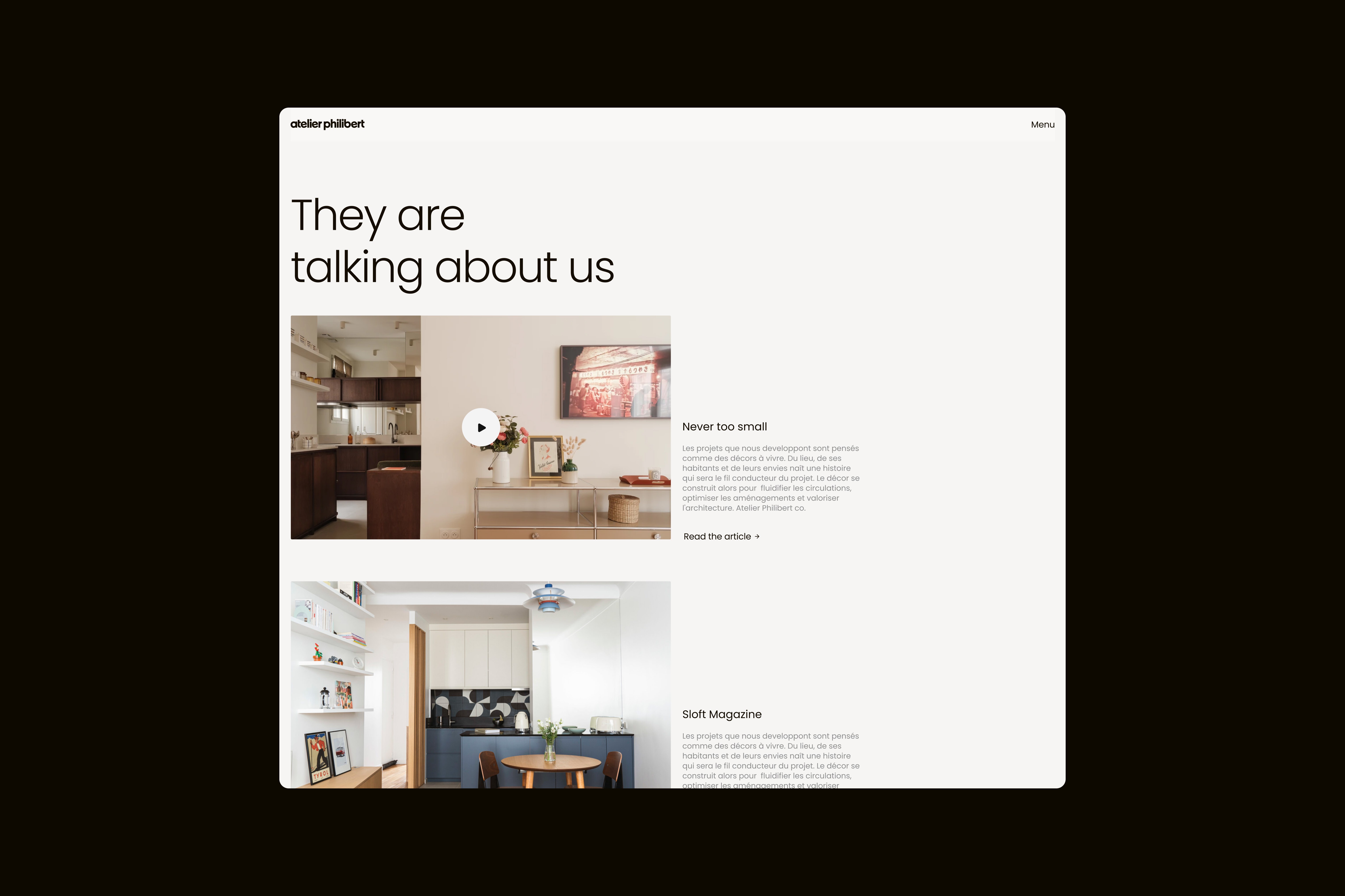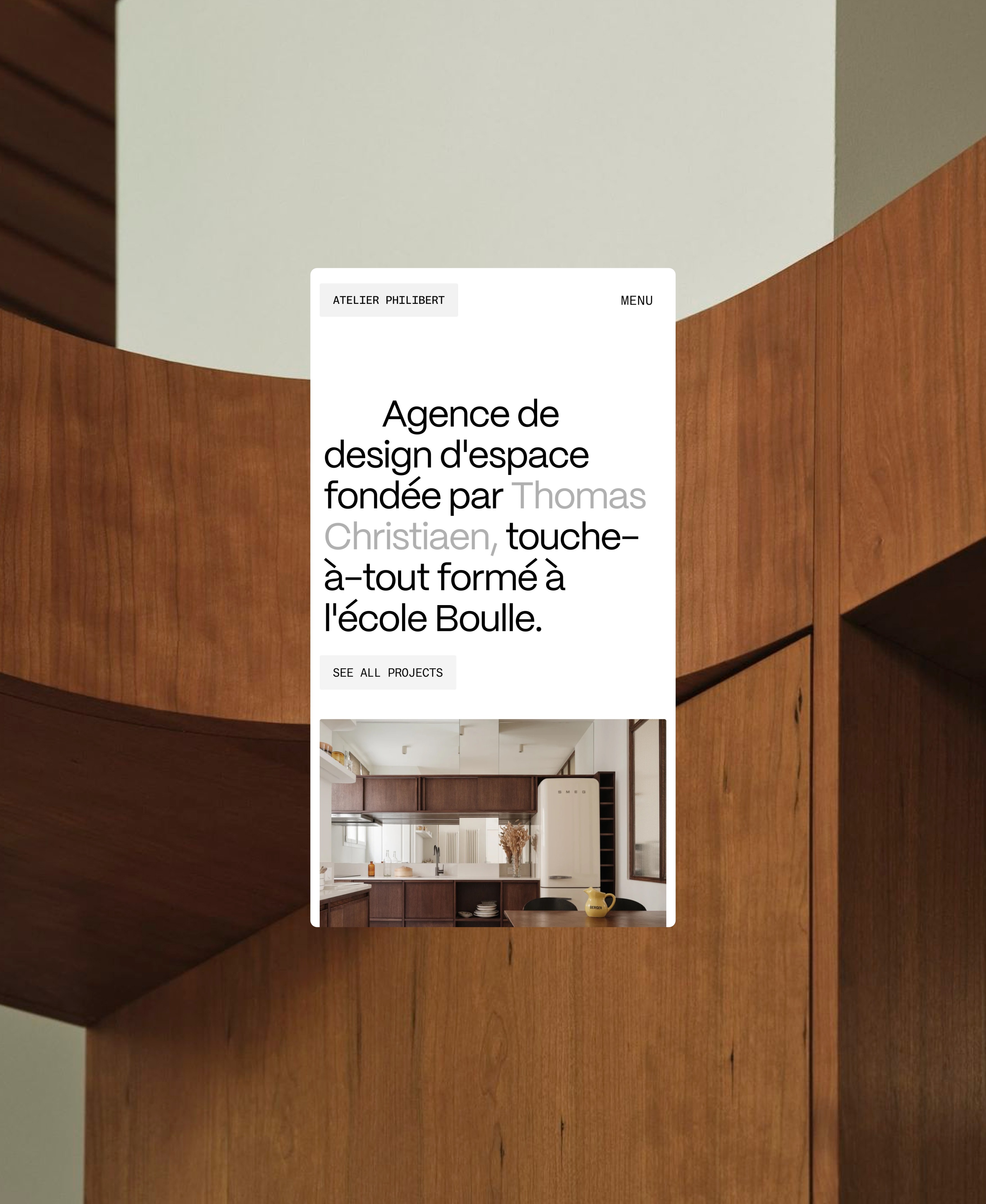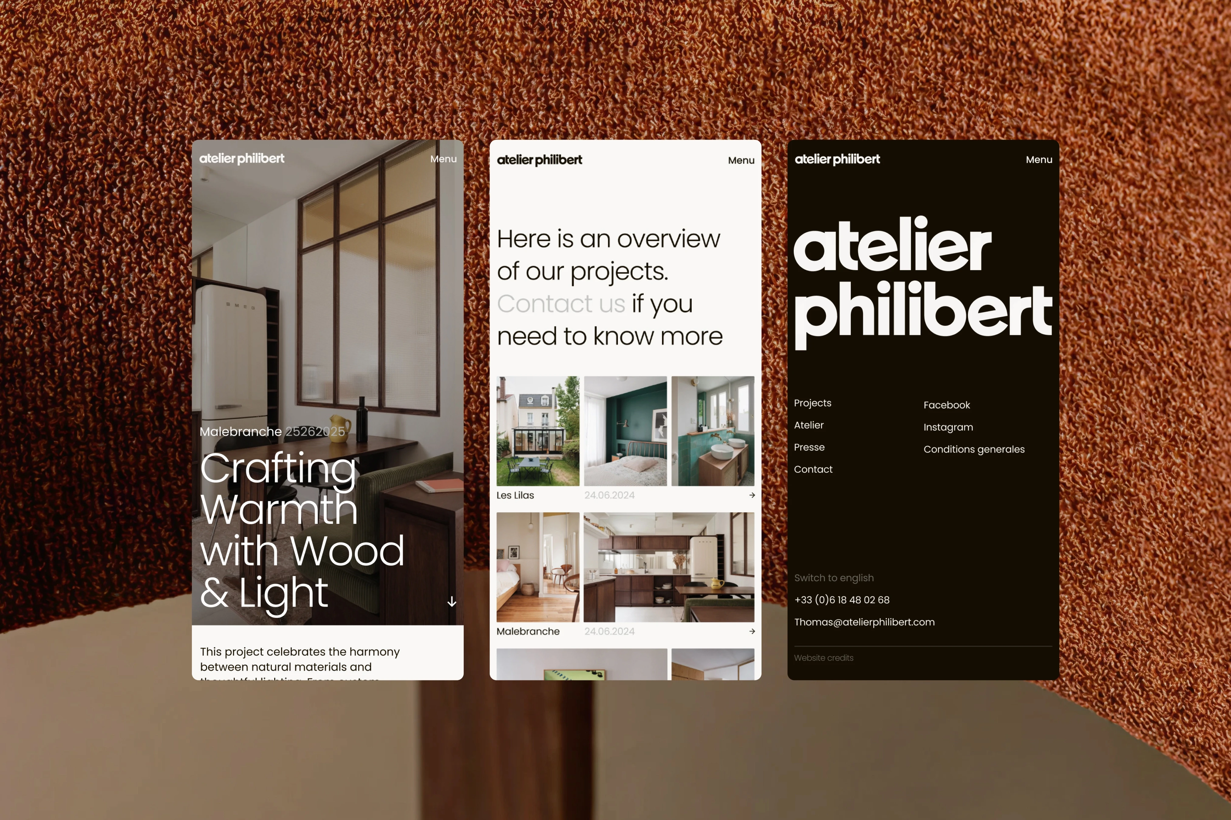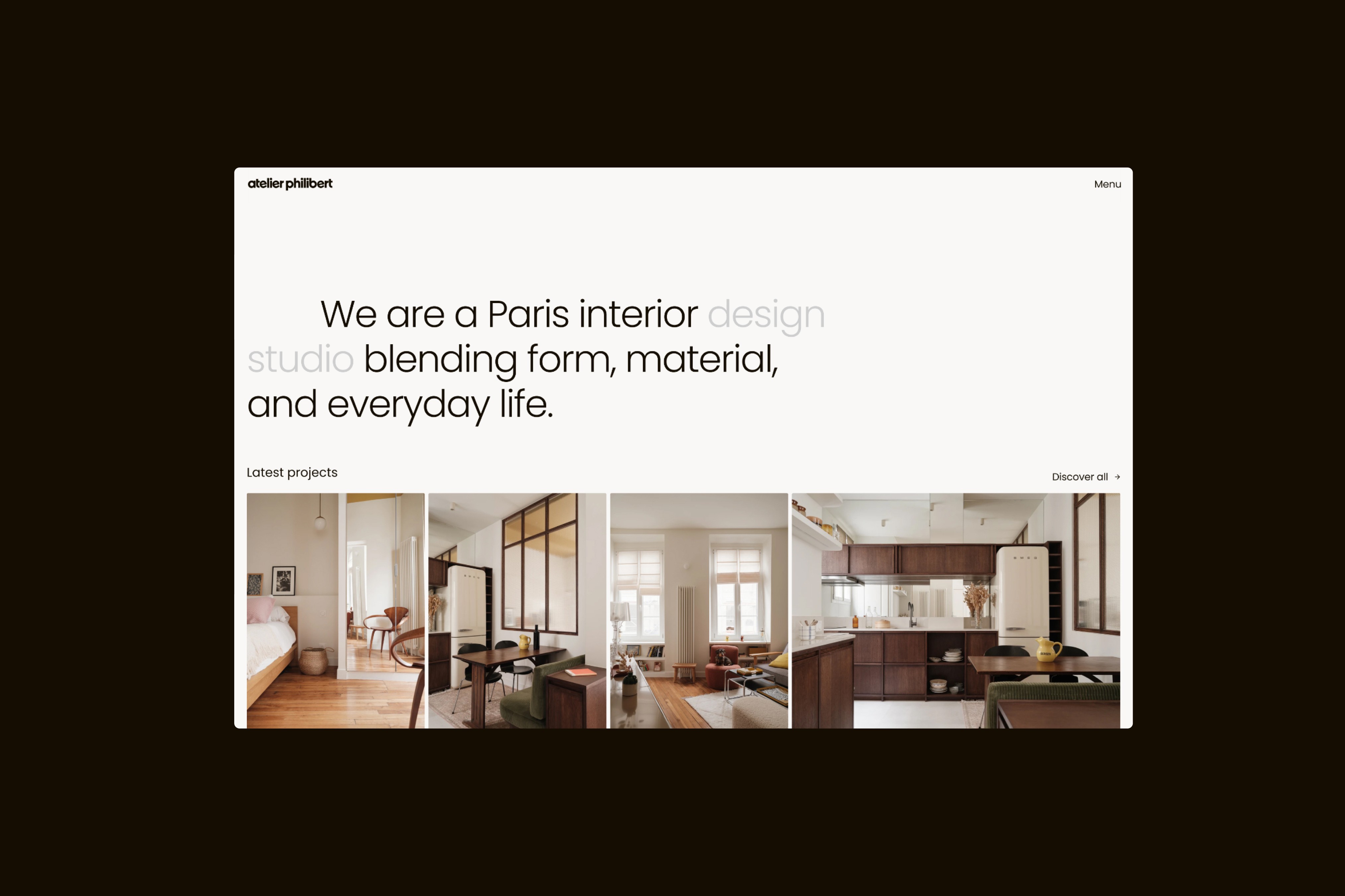 Atelier Philibert, a Paris-based interior design studio, I refreshed the brand identity with a new logo and designed an elegant, image-first website that highlights their refined aesthetic.
